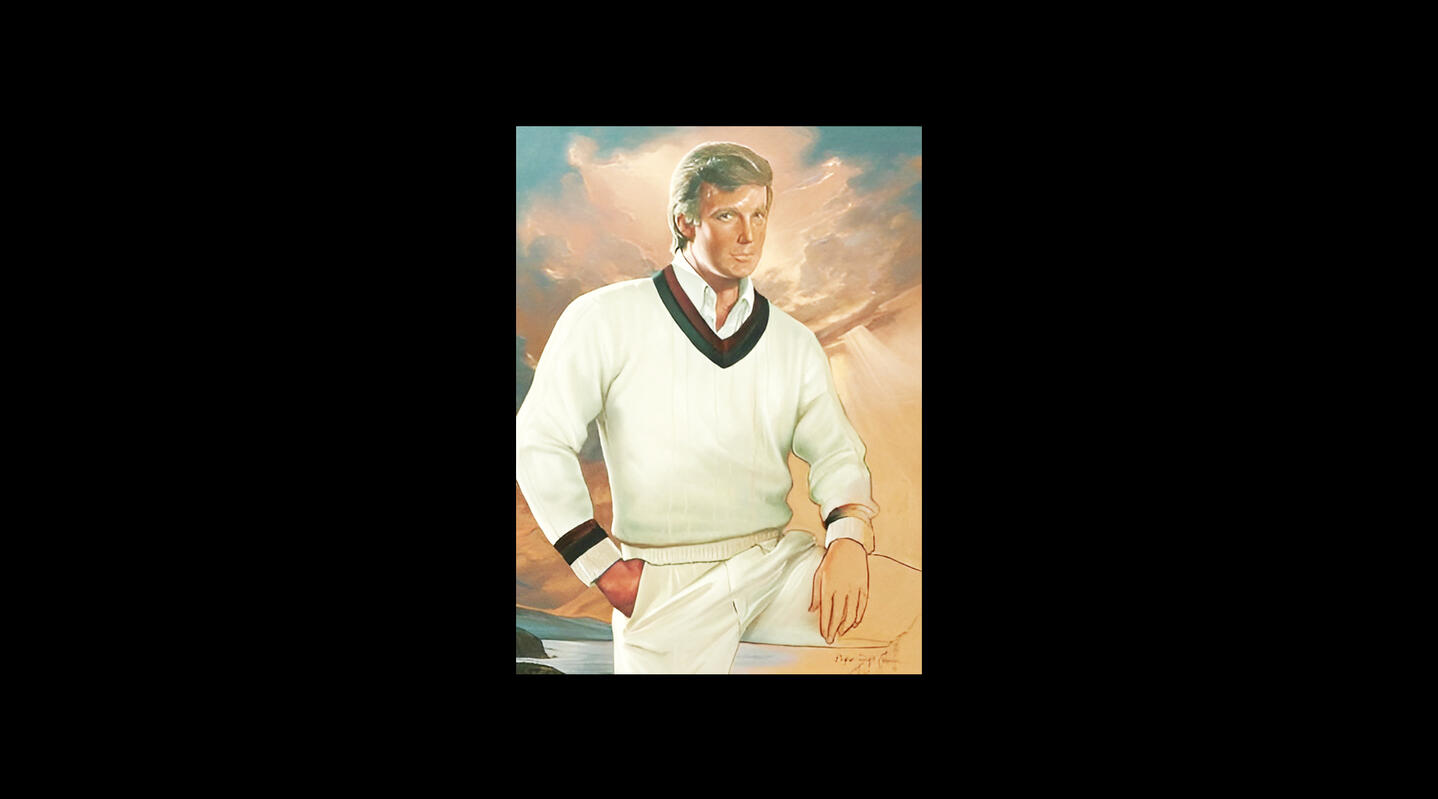 The painting has been described as depicting "a young, tanned and handsome Donald Trump dressed in a white tennis sweater". Cowan intentionally painted Trump in white clothes to differentiate him from his darker, more formal clothes that he wore in New York City. In a profile of Cowan for Oxford American, Nicole Pasulka wrote that Cowan's subjects are often depicted "twenty pounds thinner and twenty years younger, often surrounded by heavenly light, riding exotic animals, or framed by mountain ranges", and that Trump's portrait had a "standard Cowan sky shot"